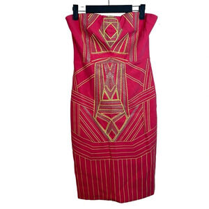 Pre owned excellent condition worn once or twice. Really cute neon pink strapless dress with yellow and silver embroidery. Womens size small.