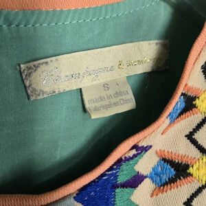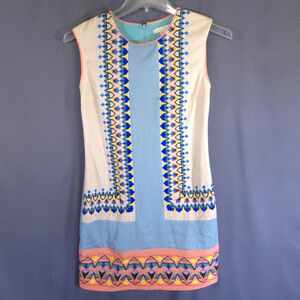 Champagne & Strawberry Modcloth Shift Dress Embroidered Boho Size Small Geo