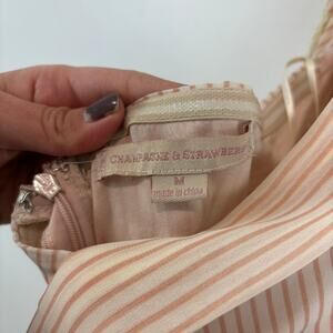 Champagne Strawberry Striped Maxi Dress Fairycore Coquette - M