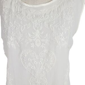 Champagne & Strawberry Tank Top S Ivory Embroidered Oversized Sleeveless Top