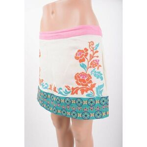 Champagne & Strawberry Mini Skirt Size M Floral White Pink Turquoise Embroidery