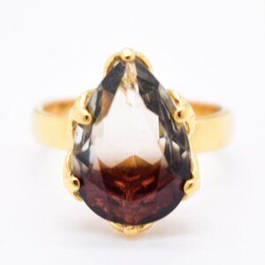 Champagne Topaz Pear-Shaped Ring 18K Gold Over .925 Sterling Silver