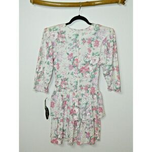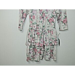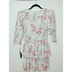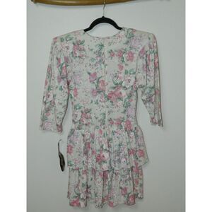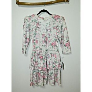 Champagne West Dress Size 3/4 Vintage 80s Ivory Pink Floral Tier Skater Mini