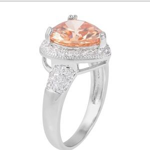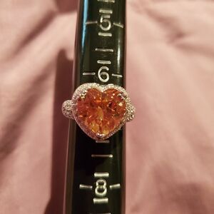 Simulated Champagne and White Diamond Heart Ring in Silvertone (Size 7.0) 7.90 ctw