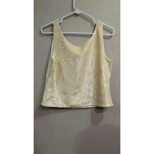 Champagne/Ivory cropped sequined tank top by Lafayette 148 size L