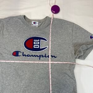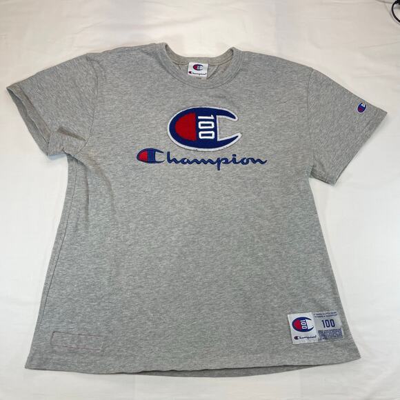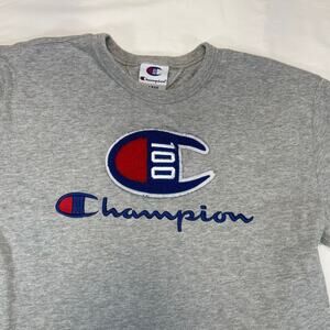 Champion 100 Year Anniversary Embroidered Logo T-Shirt Gray Men's Large