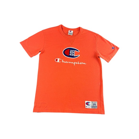 Champion 100th Anniversary Orange Graphic T Shirt Medium M Logo Tee