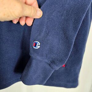 Champion 1/2 Snap Pullover Fleece Jacket Medium Men's Blue Red Long Sleeve
