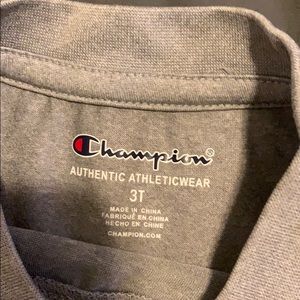 The shorts are a 4t and shirt is a 3t (shorts stretch pretty well so they can adjust to child’s waist)smoke free home