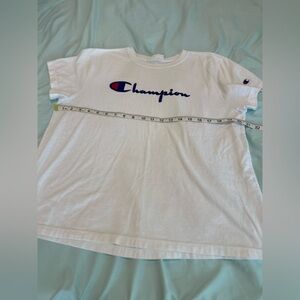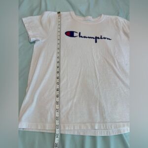 Champion 90s Mens XL White Felt Logo Applique Short Sleeve Casual Grunge. Classic tee. Great used condition. No rips, stains or defects. Please see pictures for measurements.