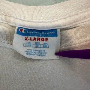 Champion 90s Mens XL White Felt Logo Applique Short Sleeve Casual Grunge.