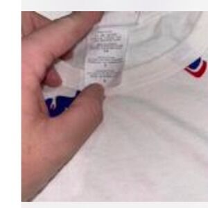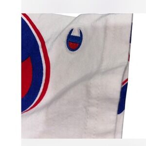 Champion All Over Logo Script Print T Shirt White Blue Red Small