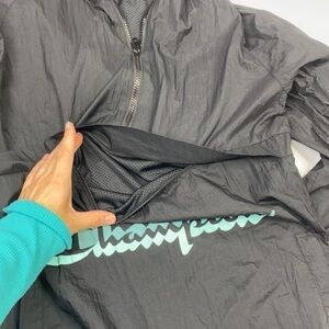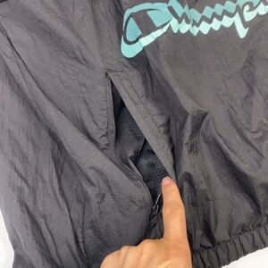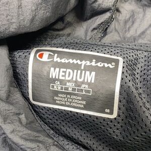 Champion Anorak Black Hooded Spellout Windbreaker Jacket Size Medium