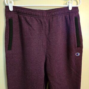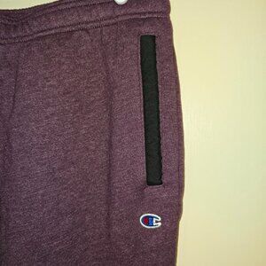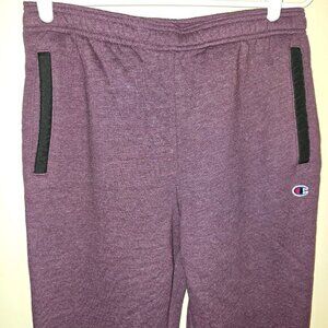 Champion Authentic Athleticwear sweatpants. Can be worn by men or women but a men's size medium. Maroon or purple in color. I'd call these a medium to heavy-weight fabric. Super soft flannel feel on the inside. Elastic waist with tie for additional comfort, support and fit. Elastic/narrow ankles. Very stylish. Two pockets on the sides. Brand new but washed them after I took off the tags. A great pair of pants for working out, walking the dog, lounging around the house or bedtime pajamas! See pictures for measurements.