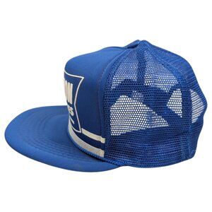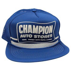 Champion Auto Stores Snapback Trucker Hat Blue Vintage 80s Puff Print NOS