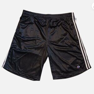 NWT Champion Big & Tall Men’s Shorts Size 2XL Black Lightweight Athletic Elastic Waist Drawstring closure shorts with 2 white stripes & 2 pockets, breathable fabric