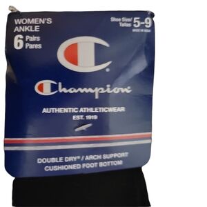 Champion Black Ankle Size 5-9 Womens 6 Pack socks