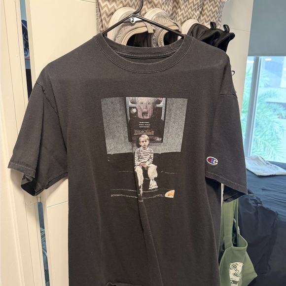 Stylish black tee with unique graphic. Comfortable and casual. Ideal for everyday wear. Size Large. Sold as is