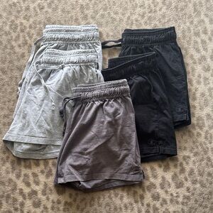 Trio of Champion shorts in black, gray, and dark gray. Perfect for casual comfort.