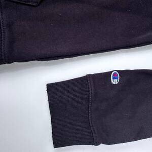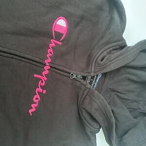 Cozy up in this classic Champion black hoodie! This comfortable sweatshirt features a hood and a stylish pink embroidered Champion logo. Perfect for everyday wear, workouts, or lounging around. It's in great condition and ready for a new home.