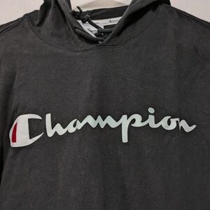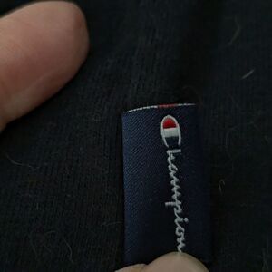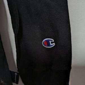 Champion Black Long Sleeve Hooded Shirt, 100% Cotton