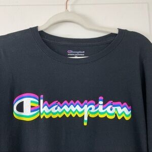 Champion Black Long Sleeve Tee W/ Multi Colored Script Logo Size 2XL