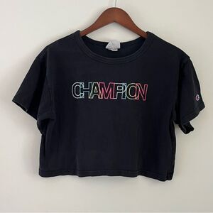 Champion Black Reverse Weave Embroidered Logo Cropped T-Shirt | Size Small