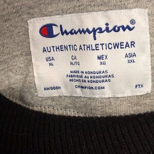 Classic black sweatshirt. Features pink Champion logo. Comfortable and stylish.