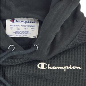 Champion | Black, Waffle Knit, Pullover Hoodie | Size Large