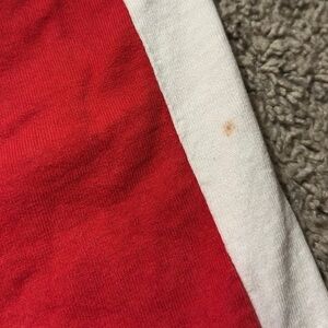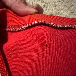Black color has a faded (charcoal) look to it, couple of small stains + small pinhole on backside near collar *see in photos*