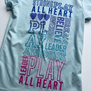 This Champion tee is perfect for any athletic activity or casual wear! The blue color is vibrant and eye-catching, and the short sleeves make it great for warmer weather. The athletic graphic adds a touch of style to this comfortable and durable tee. Don't miss out on this awesome addition to your wardrobe!