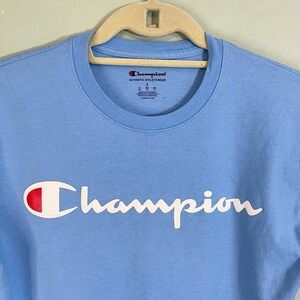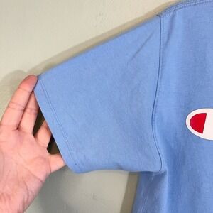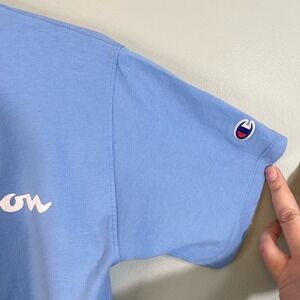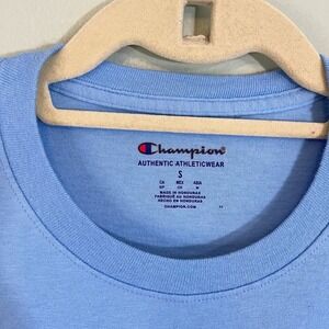 Champion Boy Script Logo Light Blue Rib Cotton Athleticwear Jersey T-Shirt Small