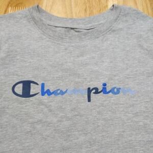 Champion Boys Grey Crew Neck Short Sleeve Blue Script Logo T-Shirt Tee, Size 7