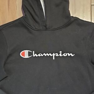 Stay comfortable and stylish with the Champion Boys size XL Black Hoodie Sweater. Perfect for casual wear. good condition no holes or stains.
