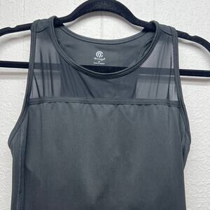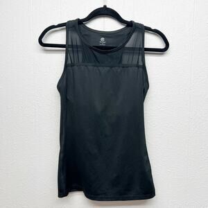 Champion women's black activewear tank top. Round neck. Mesh upper front and upper back. Stretch and breathable. Racer back. Built in bra. In good used condition. No stains, tears or holes.