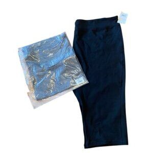 This listing is for a 2 piece Champion C9 set. Both pieces are women’s size 4X. Both are new with tags. Shirt is gray and has a small tie on the right hip area. Pants are black. They’re cropped and have a 20” inseam. Legs measure approximately 8” across at bottom hem. Waist is approx 22.5” unstretched.