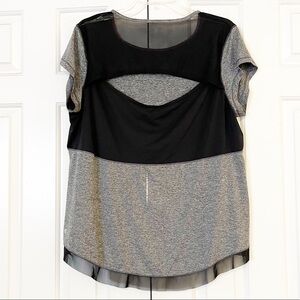 C9 by Champion heather gray top with black mesh panels and ventilated back (see photos), size women's large (tag is removed so check measurements to verify),