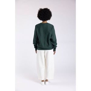 printed on a thick heavyweight premium forest green fabric. This Champion sweatshirt features felted lettering that brings a retro feel