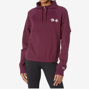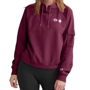 Champion Womens Campus Eco Fleece Mini Zip Mock Neck, Knockout C Embroidered