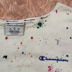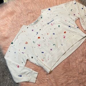 Champion Campus French Terry Crewneck Pullover Paint Splatter White Small