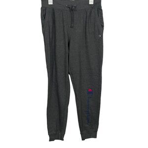 Gently worn men's size large champion charcoal grey graphic jogger sweatpants. Elastic waistband, tapered legs, leg logo. Comes from a smoke free home, bundle with other items to save & minimize shipping cost.