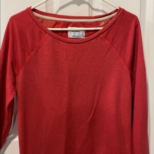 Excellent condition from smoke free owner size medium and fits snug lightweight crew from Champion. Vintage look to the wash- like a washed out red. Wider neck but not quite boatneck. If you were a small or xs this would be a cute slight off shoulder fit.