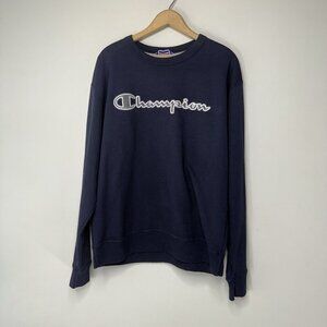 Champion Crew Neck Sweatshirt Pullover Navy Blue Retro Style Men’s Sz Large