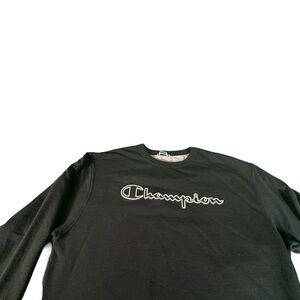 Champion Crewneck Sweatshirt XL Black Fleece Pullover Logo Athletic Fit Vintage