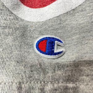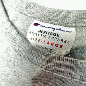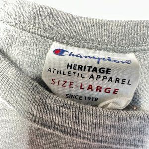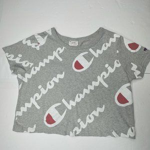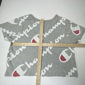 Champion Crop Top Womens Grey Heritage All Over Logo Print Short Sleeve Tee Sz large