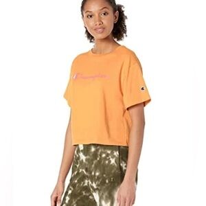 Champion Cropped Script Logo Tee. Excellent preowned condition. Size medium. Capri orange color!