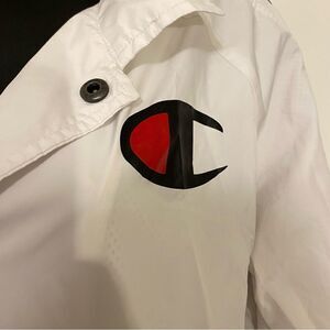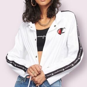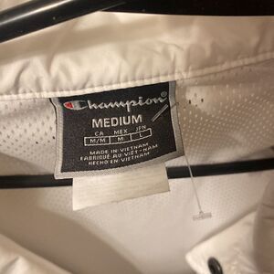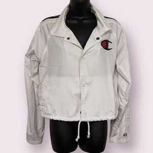 Champion Cropped Coaches Jacket White Logo Windbreaker Size Medium