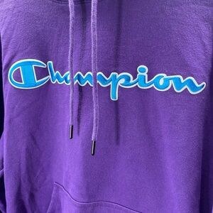 Champion Embroidered Spellout Hoodie Sweatshirt Mens M Purple Activewear 2401