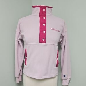 Champion Fleece Pullover Womens Pink with Snap Button Athleisure Gorpcore XS