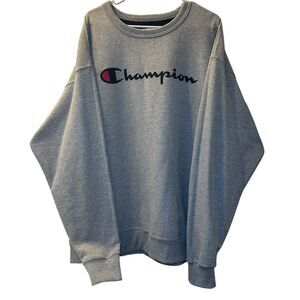 Champion Fleece Sweatshirt Pullover Men's Size 2XL Gray Activewear Large Logo